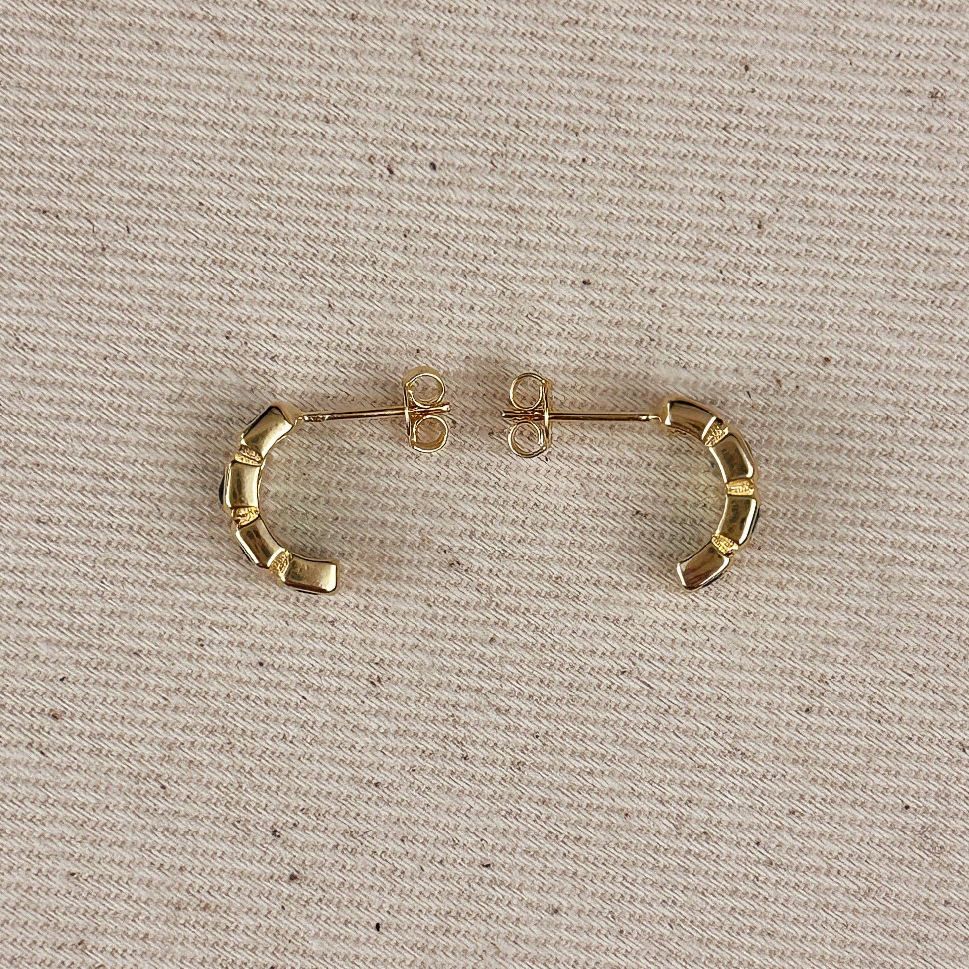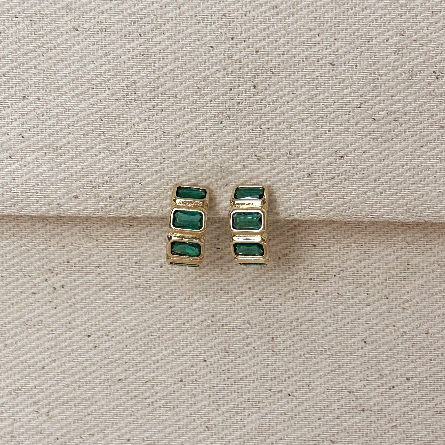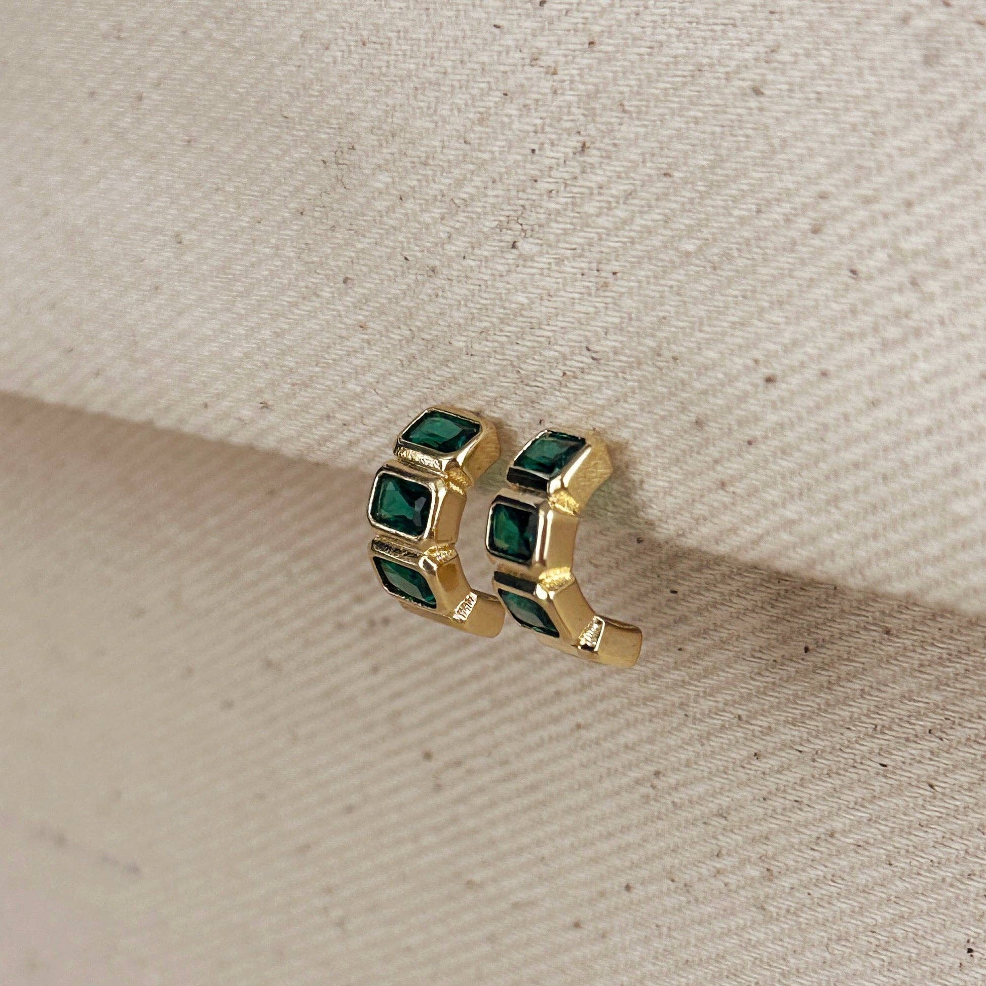 18k Gold Filled Chunky CZ Curve Earrings: Emerald