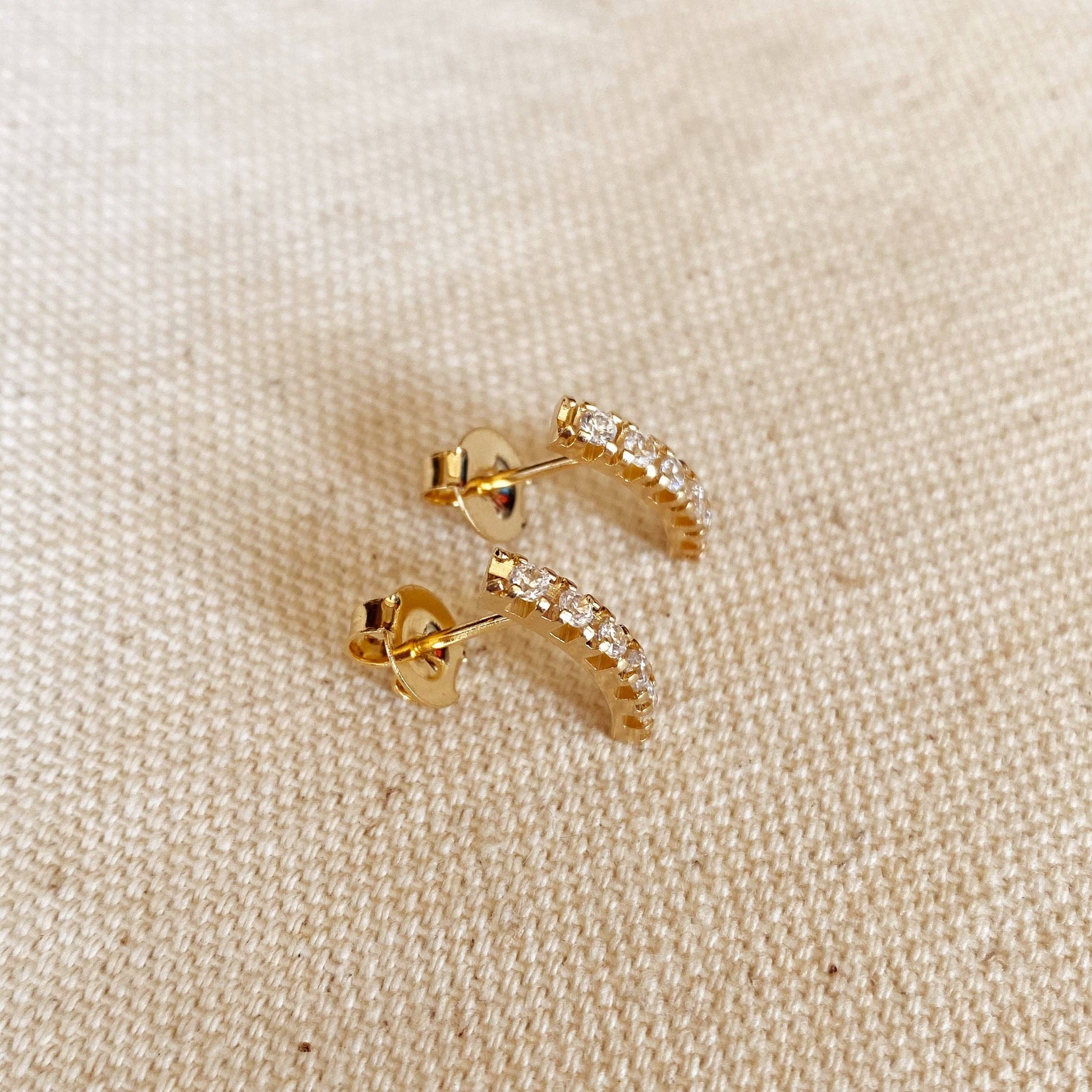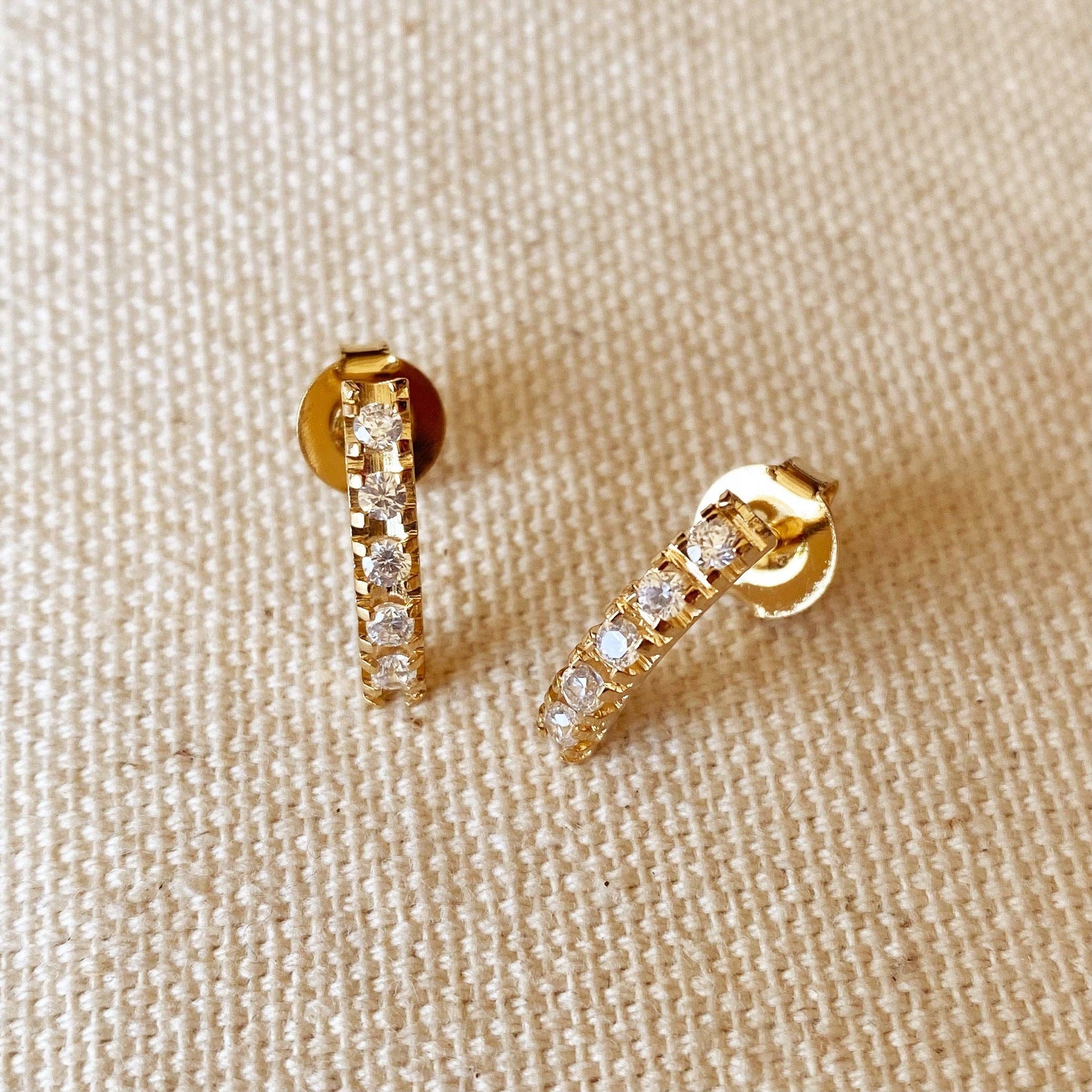 18k Gold Filled Curved Bar Clear Crystal Stud Earrings