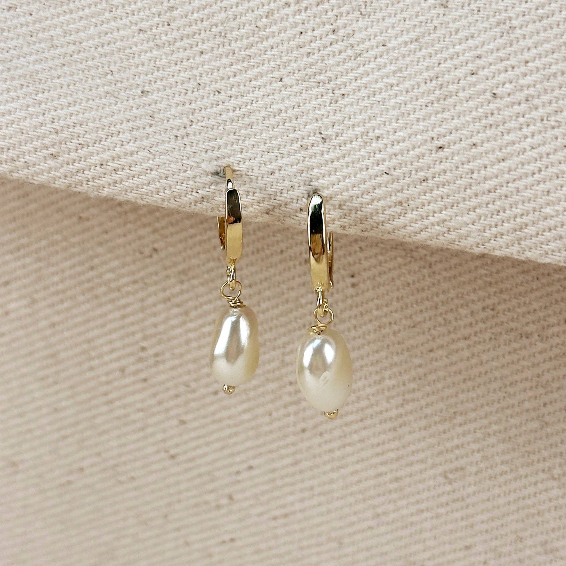 18k Gold Filled Drop Baroque Pearl Hoop Earrings