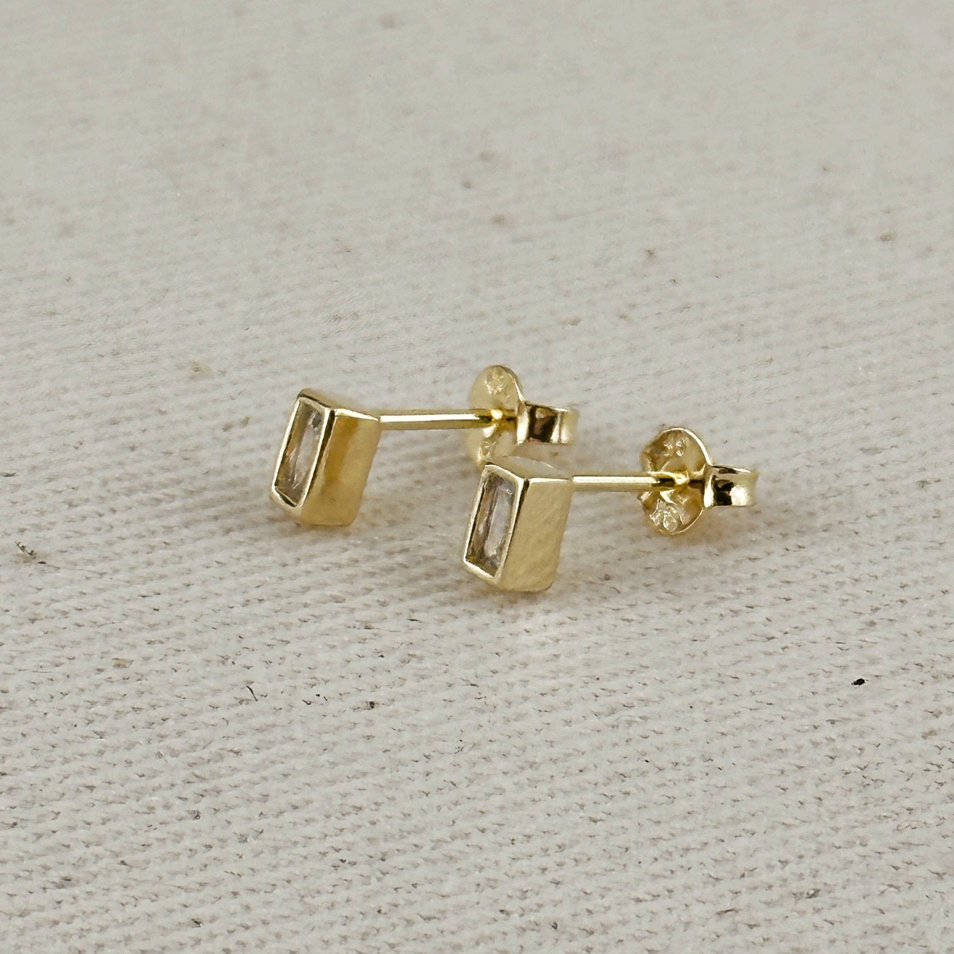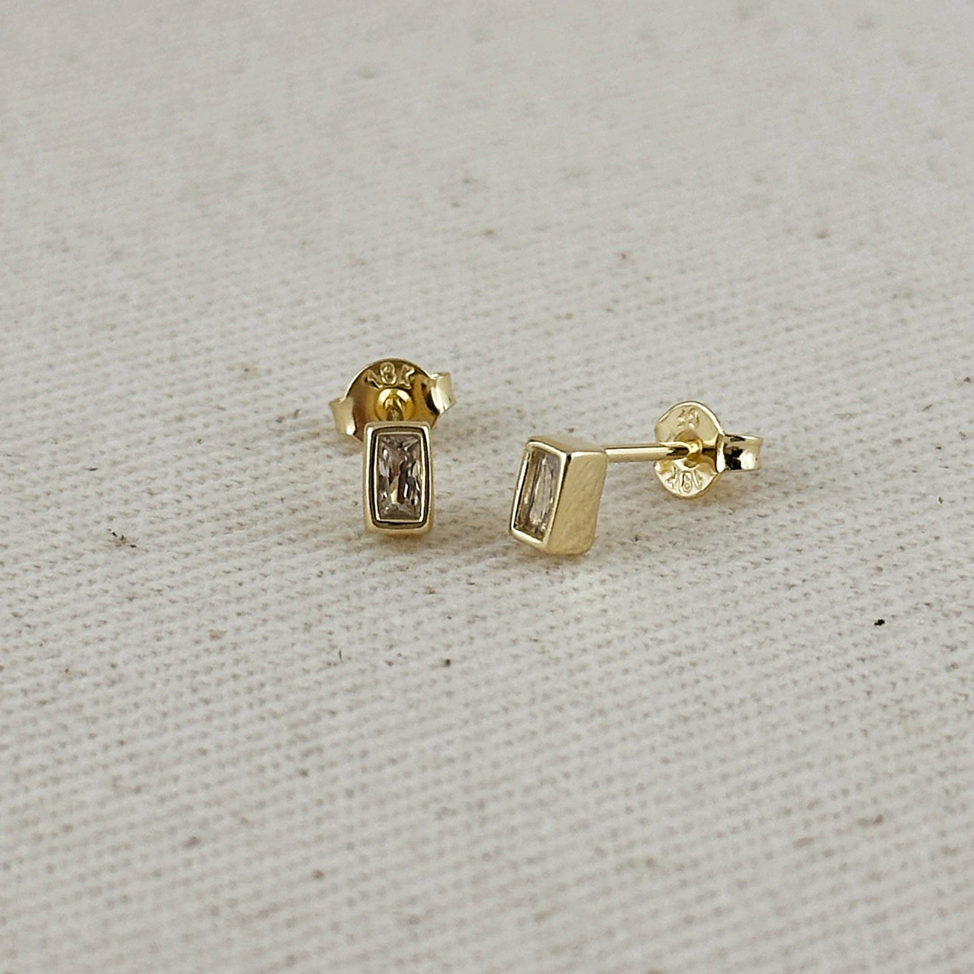 18k Gold Filled Mini Bezel Baguette Stud Earrings