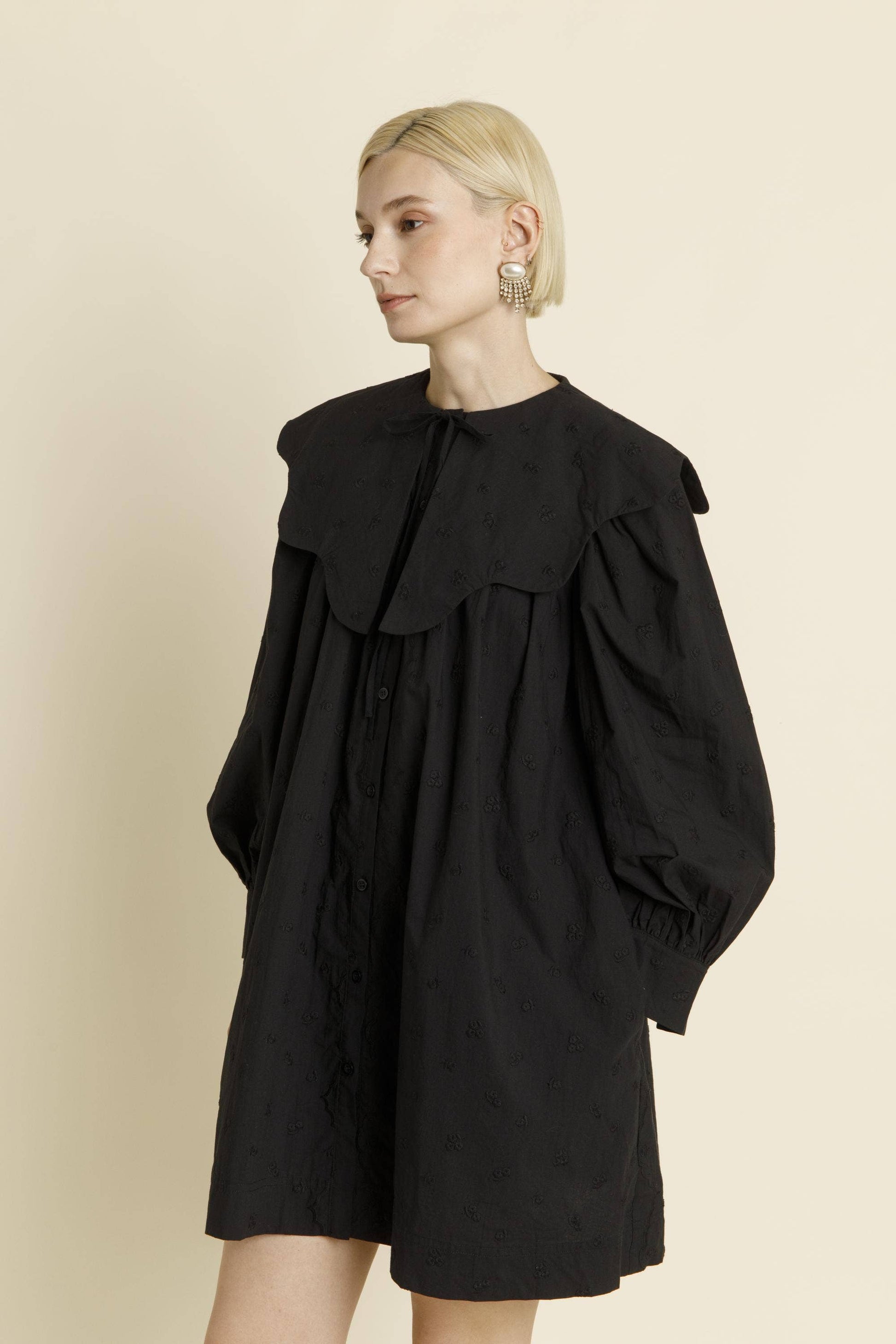 SCALLOP COLLAR MINI DRESS: TERRACOTTA / L