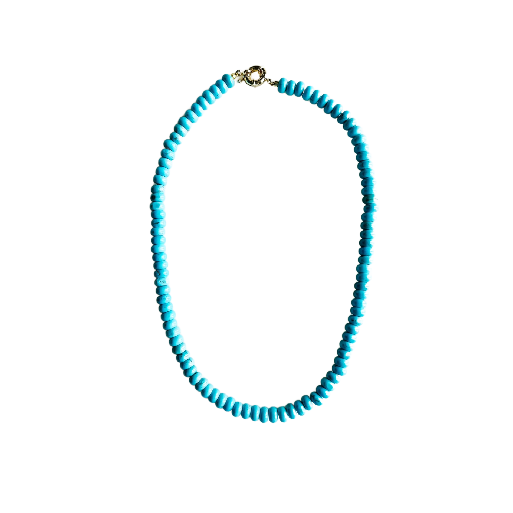 Each necklace is handmade in Charleston, South Carolina using gemstone beads and 18kt gold plated clasps. These are perfect to pair with charms either on the clasp and wear with the clasp in the front, or add a pendant or charm to the front of the beaded necklace. 17 inches long.