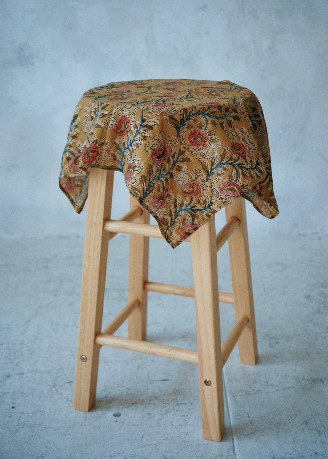 Material: 100% Light Weight Voile Cotton Print: Hand Block Printed using Vegetable dyes Size: 21" x 21" Wash Care: Hand wash in cold water. Kalamkari Printing: Kalamkari is a traditional art of fabric printing using vegetable dyes. The printing is done using wooden blocks chiseled from teak wood by master craftsmen. Small smudges and other minor Imperfections are normal and a testimony to the fact that the printing is entirely done by hand.